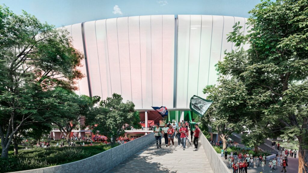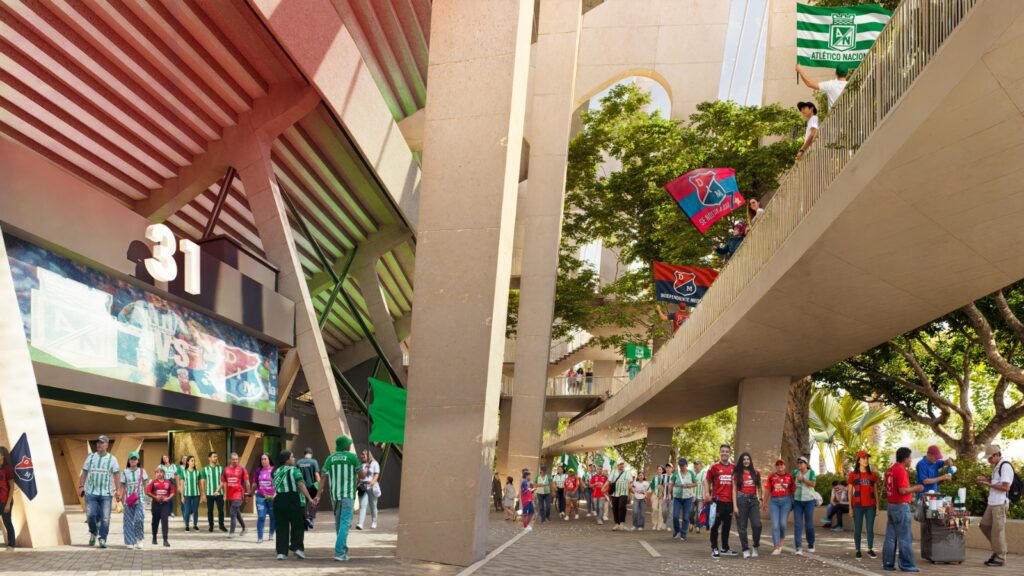 Sin embargo, la transformación no se limitará al interior. Alrededor del estadio se intervendrán 40.000 metros cuadrados de espacio público, lo que permitirá mejorar la movilidad peatonal, la conexión con el entorno y el urbanismo de la zona. La fachada del Estadio Atanasio Girardot también será completamente renovada, con un diseño moderno de 23.000 metros cuadrados que integrará visual y funcionalmente el estadio con la ciudad.