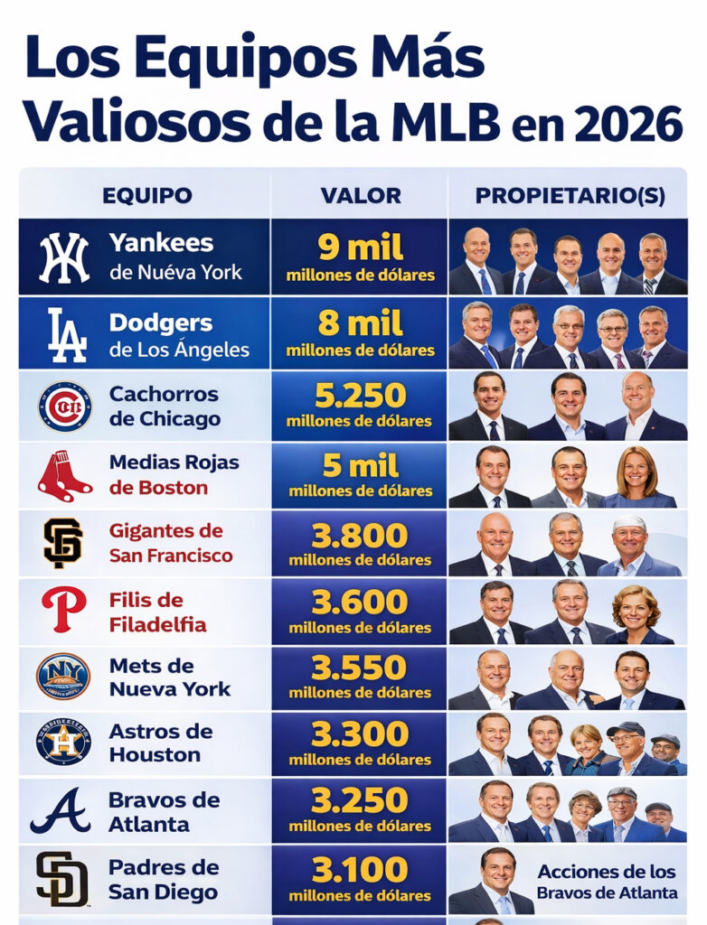 La valoración de los equipos MLB 2026 no solo refleja su fortaleza financiera, sino también su capacidad para convertirse en plataformas estratégicas de crecimiento.
